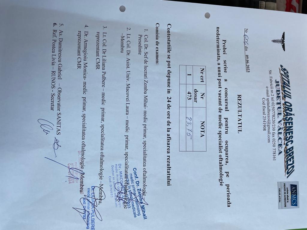 UPDATE 09.06.2023 – REZULTAT proba scrisa